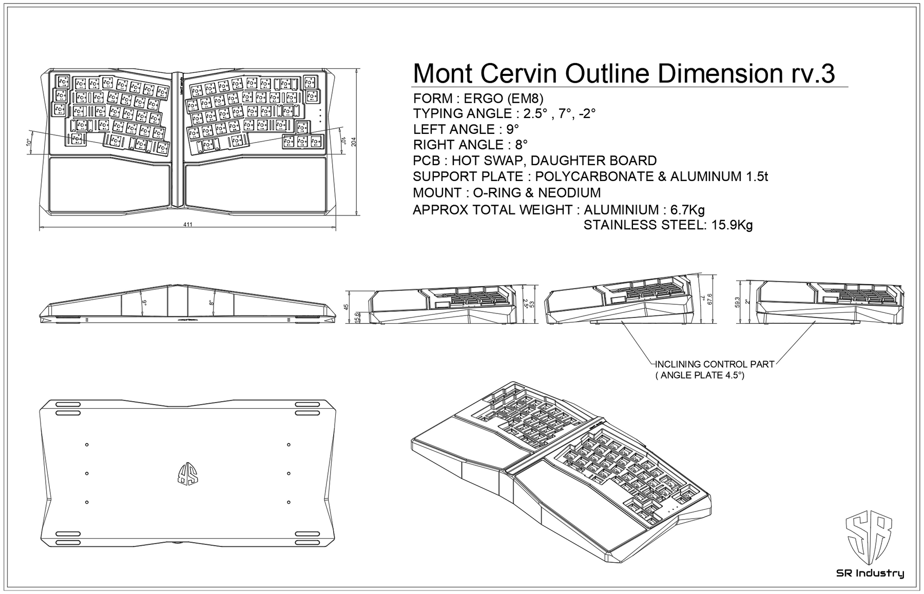 - TYPING ANGLE : 2.5˚, 7˚, -2˚