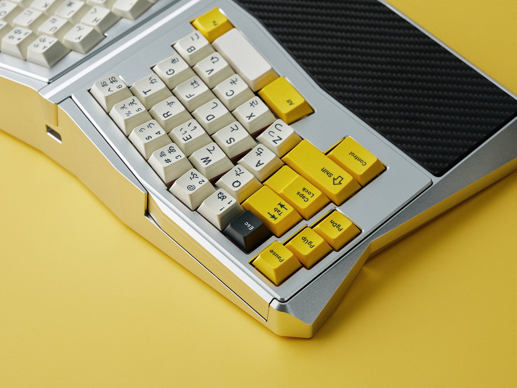 1. Tented ergo keyboard, that 2 different keyboards from left and right are mounted in the base part, working as tented ergo.