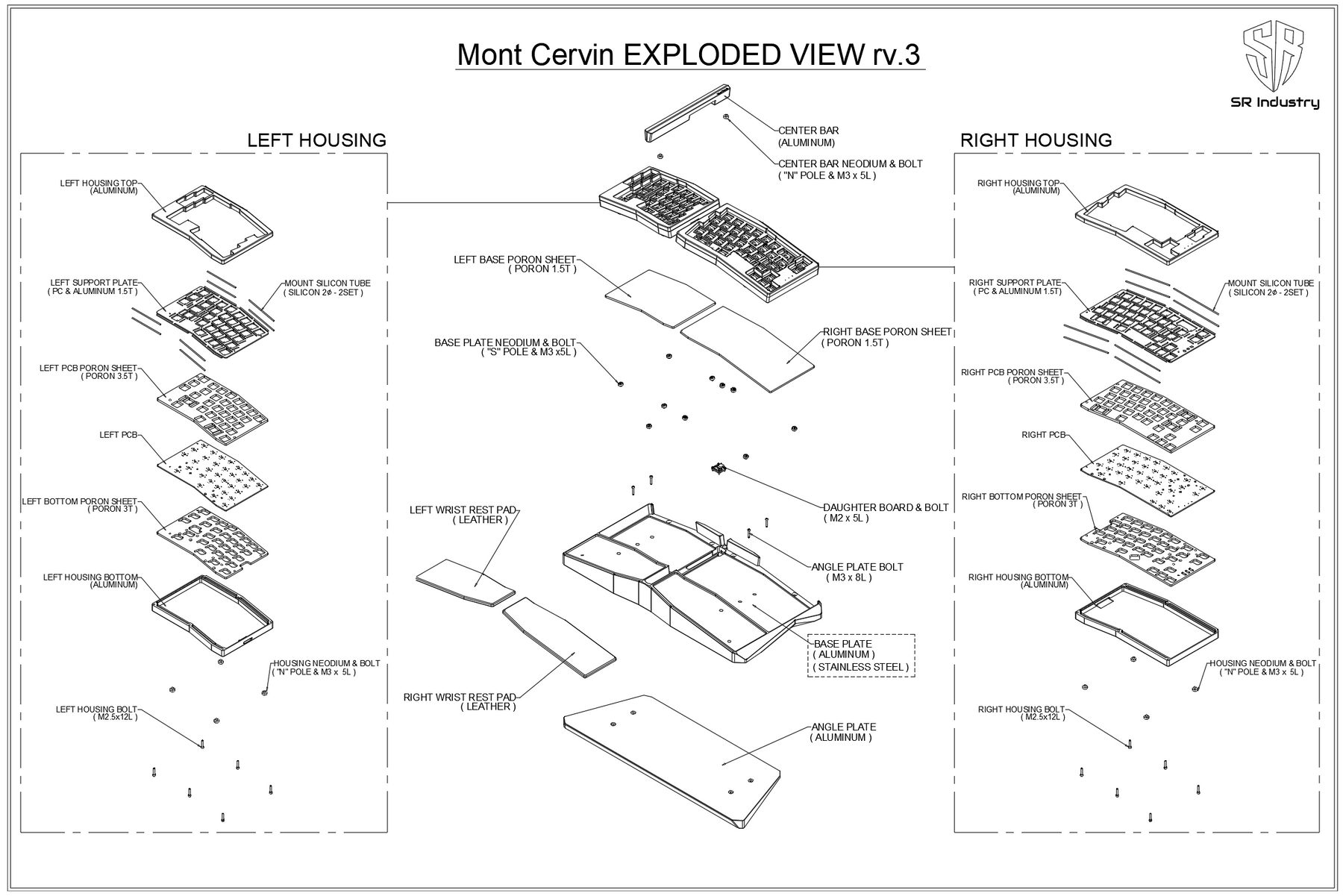 - PORON 3SHEET (PCB Poron 3.5t, Bottom Poron 3t, Base Poron 1.5t)